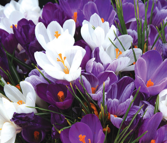 An icy Crocus vernus mixture of whites, purples and blues – no yellow; 9/10 cm.