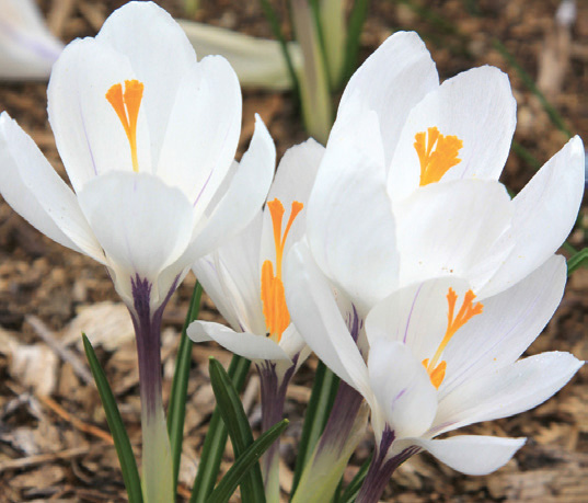 Six petaled, cup–shaped flowers with grasslike foliage that come in a myriad of colors; early blooming and great for rock gardens, forcing and for designs in the late winter or early spring lawns; whz 3–8; 3"–6"; 6/7 cm bulbs unless noted otherwise.