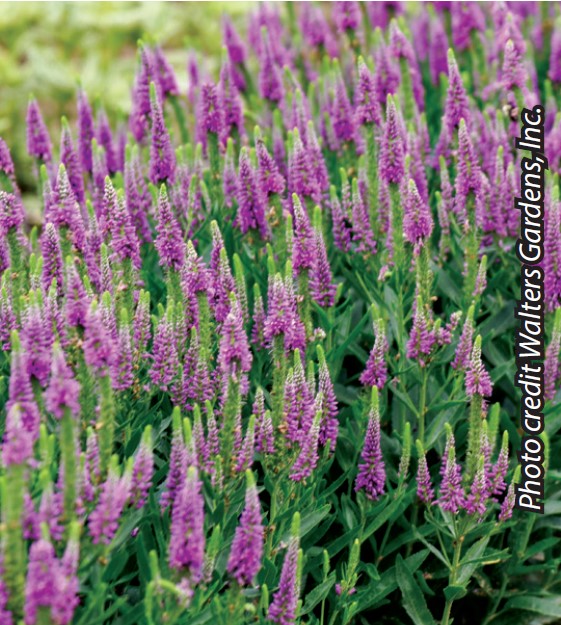 Numerous spikes of soft lilac purple flowers that open from lighter colored buds; blooms mid to late summer; deep green foliage has shown good mildew resistance; pollinator attractor; full to part sun; 18″-20″; whz 4-8; plug.