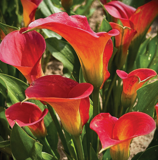 Well known as a graceful cut flower especially in elegant, large flower arrangements, what may not be known about this plant is its adaptability. We have grown them successfully in a flower border along with other bulbs and perennials, but the aethiopica types also grow happily at water’s edge or even potted up and submerged - pot and all - in the shallow end of our pond. The spotted leafed cultivars prefer a drier site and often perform well as container subjects that can be kept dry and from freezing when dormant; native to South Africa, its graceful, vase-like flowers bloom from mid through late summer; critter resistant; 1-3 per sq. ft.; 12”-18” and whz 7-10 as long as the drainage is good; 16/18cm bulbs, unless otherwise noted.
