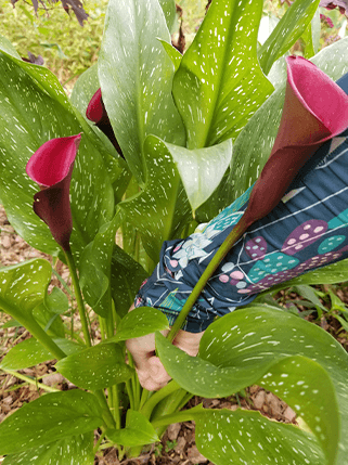 Some flowers, like Alstroemeria, Bletilla, and Zantedeschia (Callas), will rebloom if you harvest the flowers with a special technique. Instead of cutting the stems with clippers, reach down low on the stem, and with a gentle tug, the whole stem pulls from the root base. This encourages a healthy plant to send up another stem with a flower. Again, it won’t continually send new shoots until the frost, like the dahlia, but you can expect one more round of flowers to create more beautiful DIY bouquets.