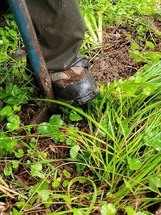 Insert a spade or digging fork straight down into the soil about 6” away from the clump of bulbs you wish to dig. Pull back on the handle, which should begin to ‘lift’ the clump of bulbs. You may need to push the spade/fork a bit farther, pulling back again on the handle to loosen the clump even more.